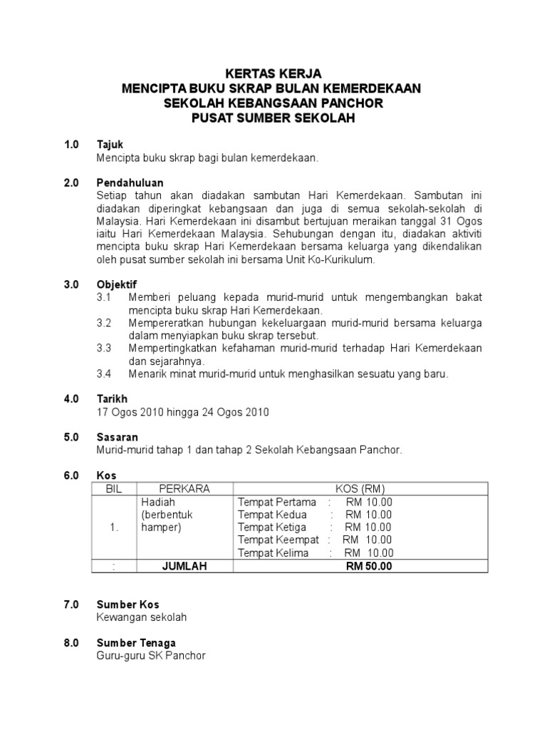 Contoh Kertas Kerja Buku Skrap